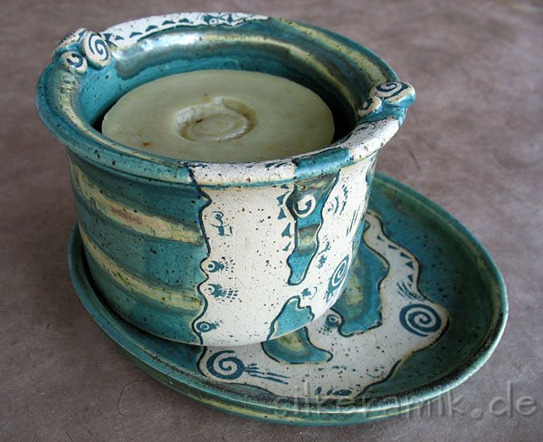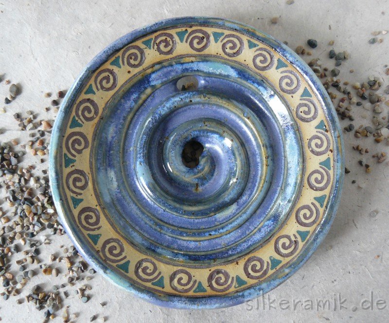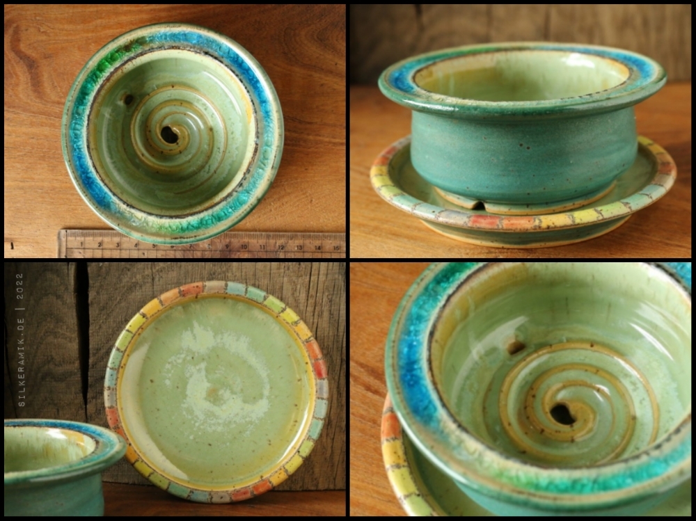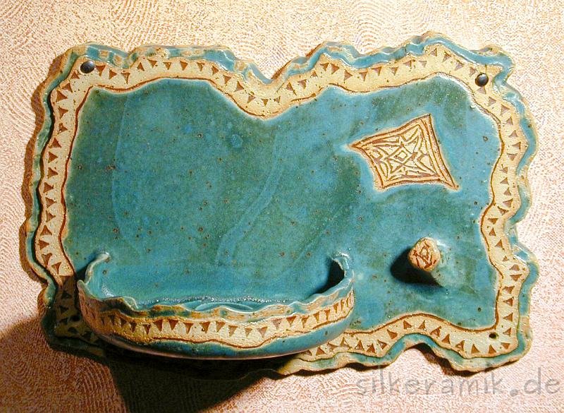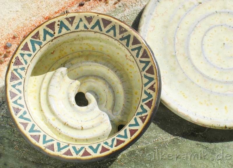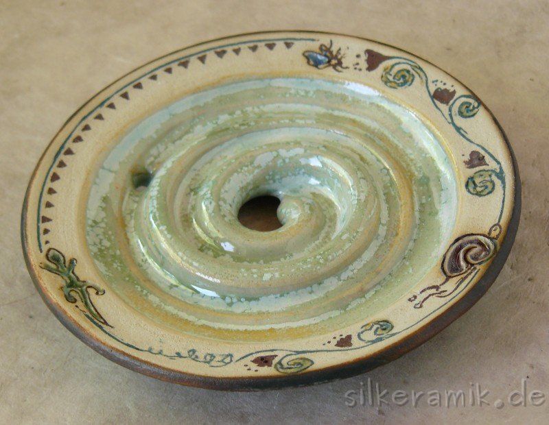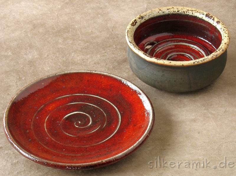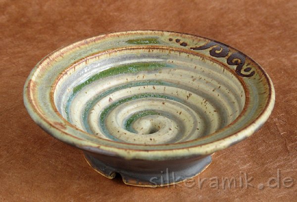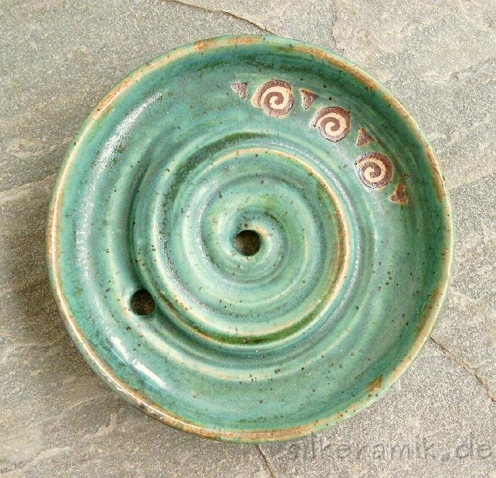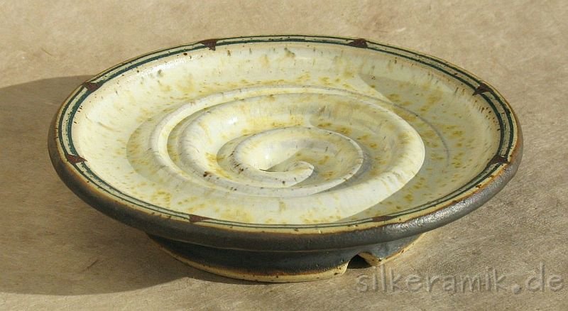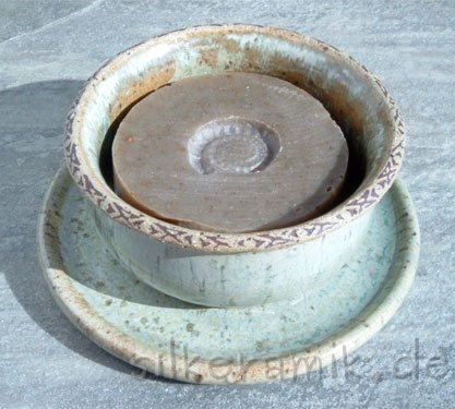 Seifenschalen fertige ich seit 2002 mit durchdachtem Ablauf, damit die Seife immer schön trocken liegen kann – ob rund oder eckig, ob für Rasierseife oder Schampooseife. Dabei kommen unterschiedliche Glasuren, Techniken und Tone zum Einsatz: Hier zeige ich die Ablagen aus Steinzeugton.
