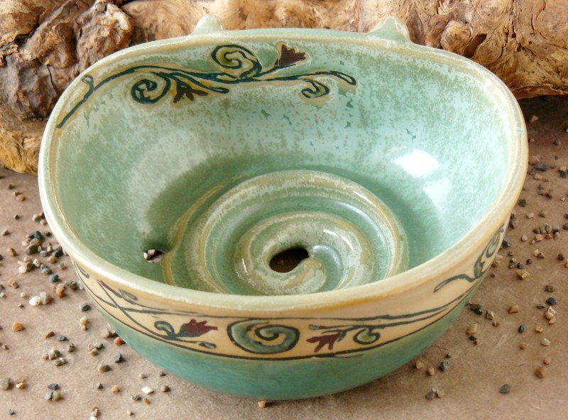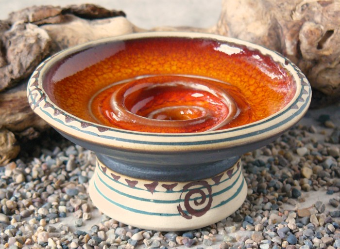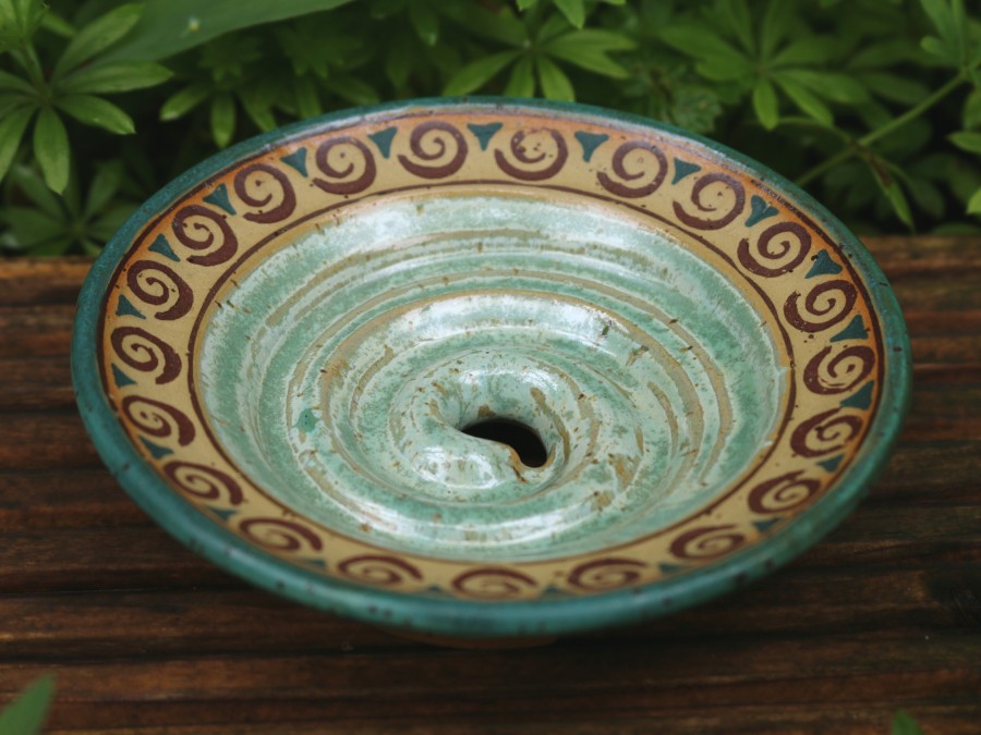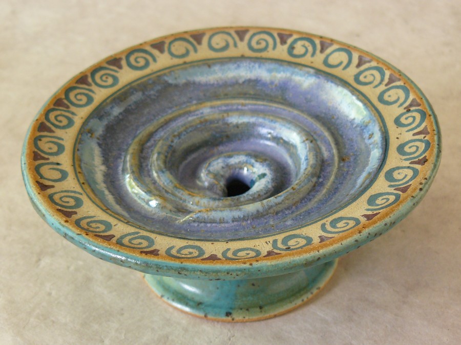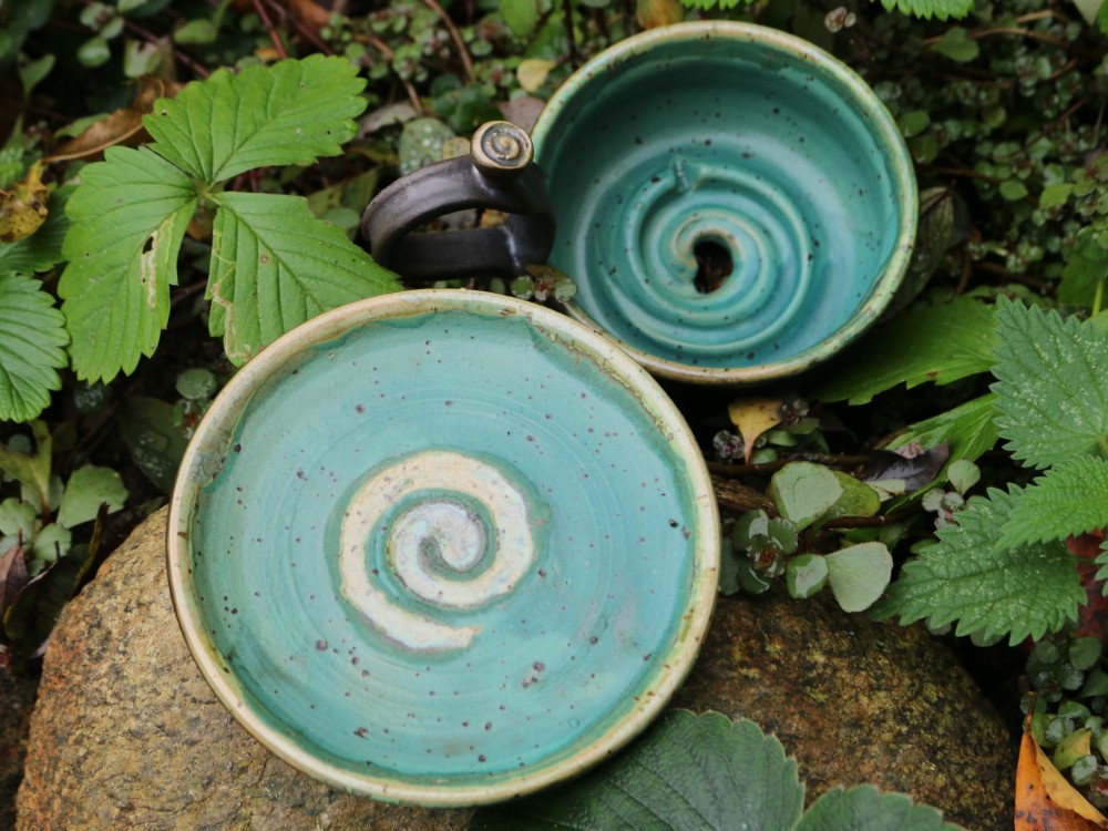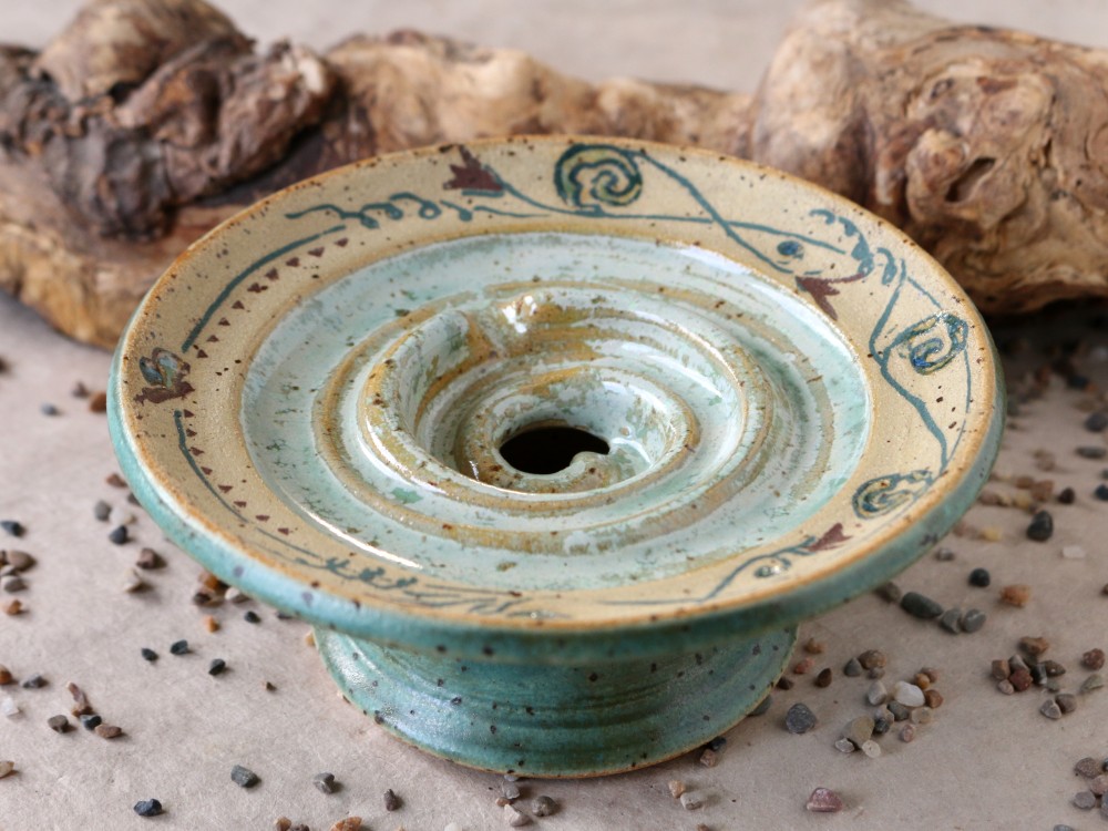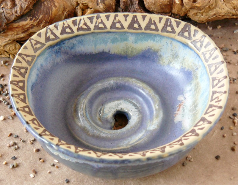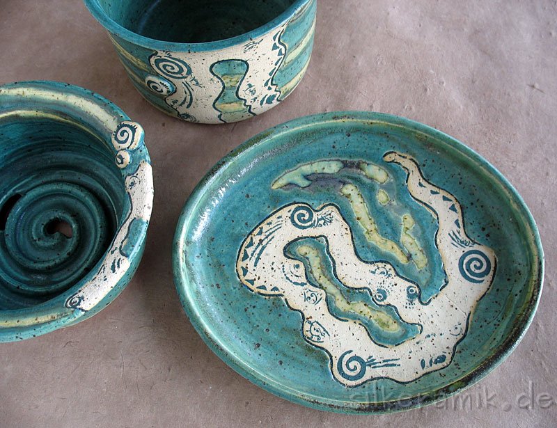 Seifenschalen fertige ich seit 2002 mit durchdachtem Ablauf, damit die Seife immer schön trocken liegen kann – ob rund oder eckig, ob für Rasierseife oder Schampooseife. Dabei kommen unterschiedliche Glasuren, Techniken und Tone zum Einsatz: Hier zeige ich die Ablagen aus Steinzeugton.