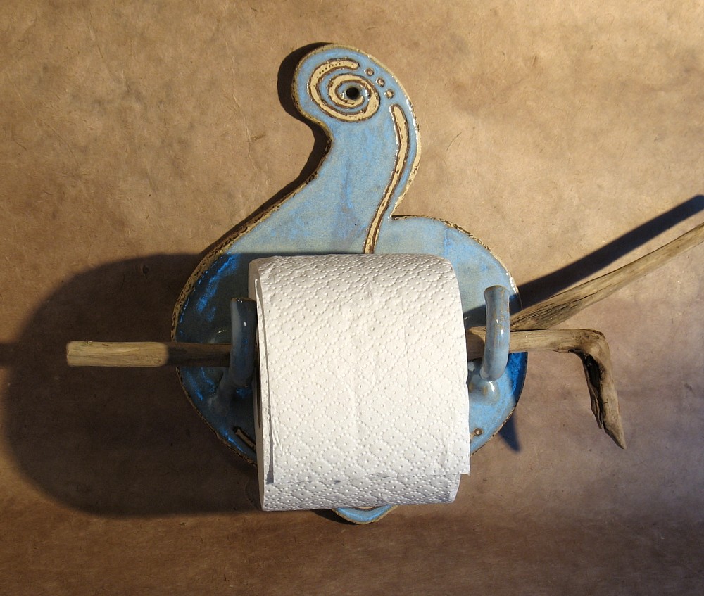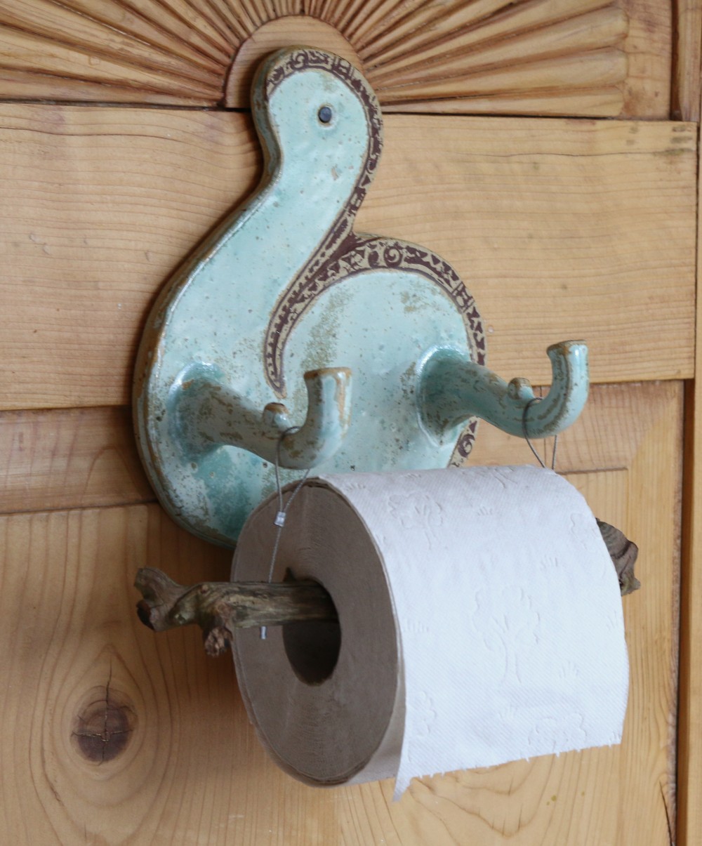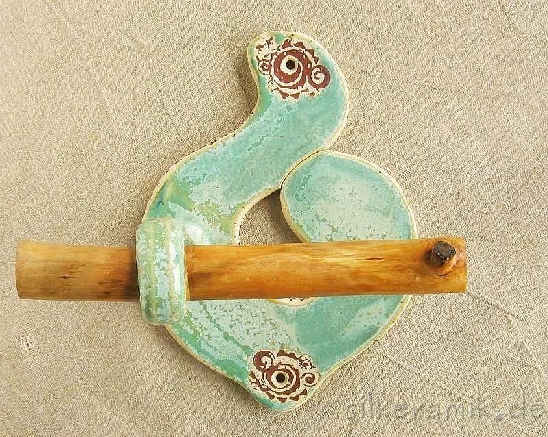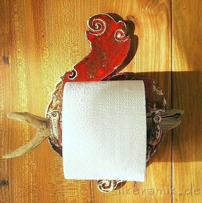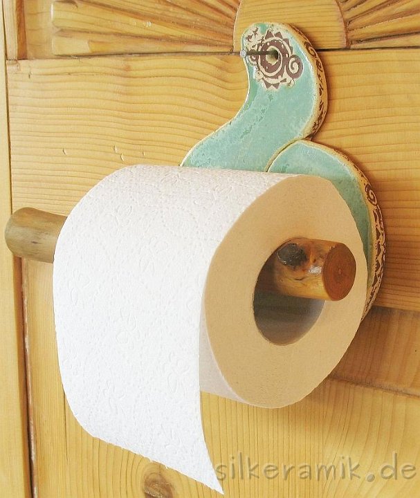 Zugegeben: Es ist nicht so einfach, aus Keramik stabile WC-Rollen-Halter zu fertigen, aber wer sich vorsieht kommt mit den heraus stehenden Holz-Auflegern sicher zurecht.