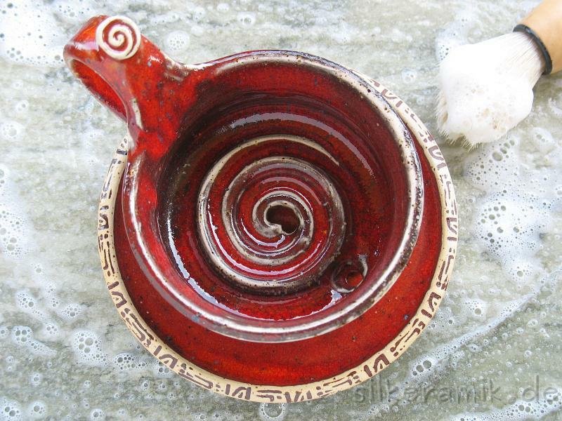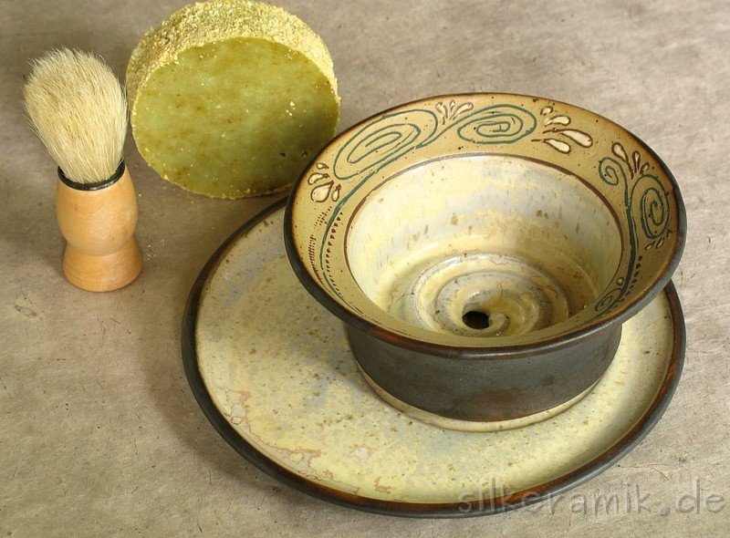 Die Rasierseifenschalen haben einen höheren Rand, damit der Schaum im Gefäß angerührt werden kann und auch drin bleibt.