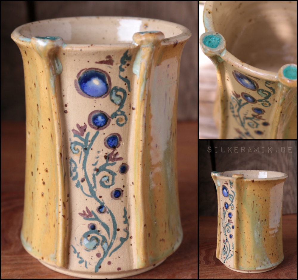 Die Versandkosten betragen deutschlandweit pro Bestellung 3,50€ für flache Kleinteile (Irdenware-Seifenschalen, Schmuck, Kräuterstecker) und bei höheren Stücken oder wenn auch solche dabei sind 6,50€ (DHL-Paket).