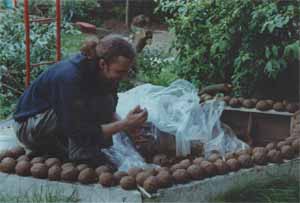 - 3. Aus der Lehm-Sand-Mischung werden jede Menge Bälle geformt.