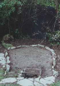 - 4. Ein Platz für den Ofen wurde bereits vorbereitet. Die Aschegrube wurde mit Steinen ausgekleidet.