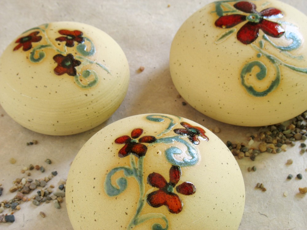 Die Versandkosten betragen deutschlandweit pro Bestellung 3,50€ für flache Kleinteile (Irdenware-Seifenschalen, Schmuck, Kräuterstecker) und bei höheren Stücken oder wenn auch solche dabei sind 6,50€ (DHL-Paket).