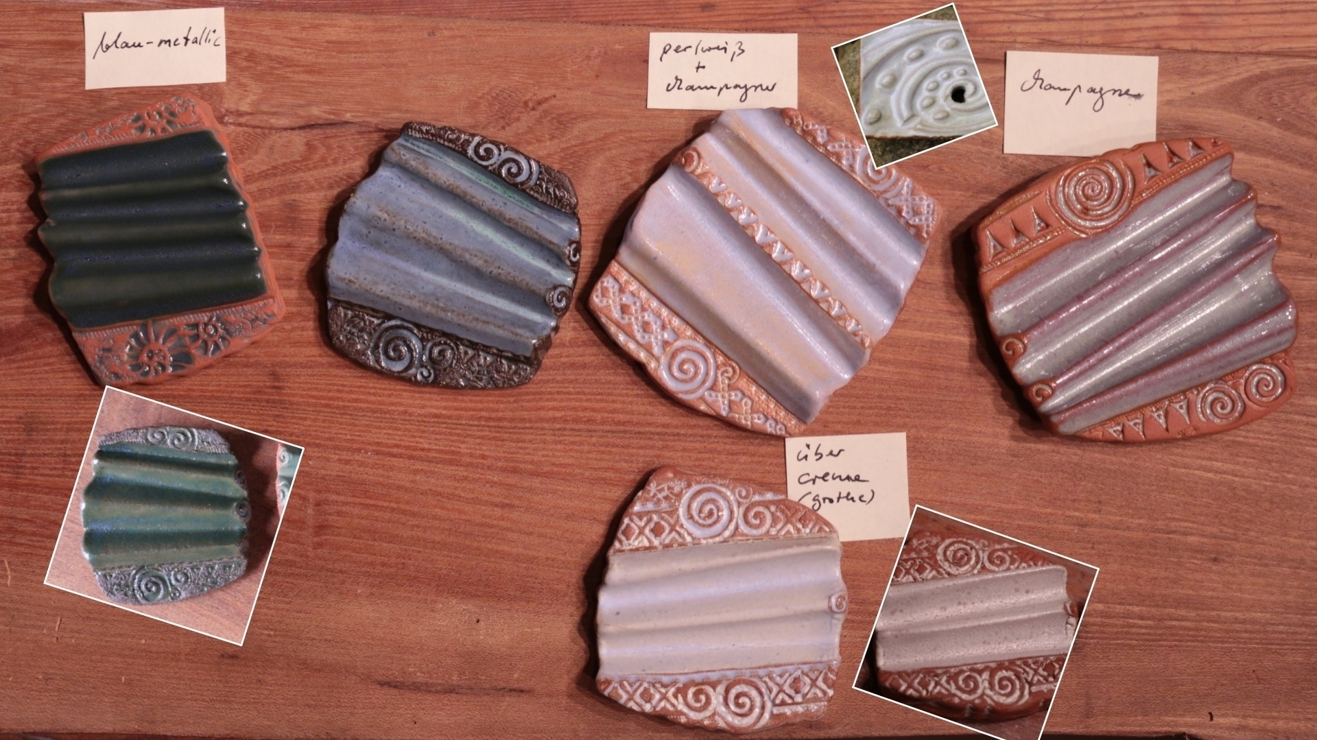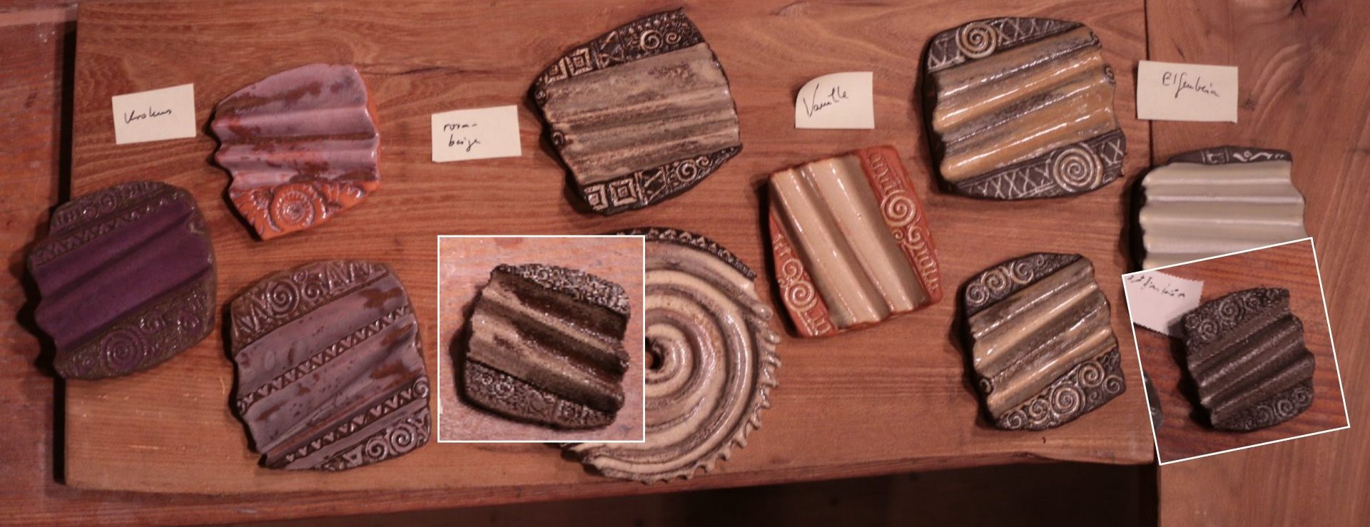 Ein paar der Trockenwellen und Seifenschnecken, die ich in den letzten Wochen gemacht habe, müssen nun für weitere Glasurmix-Experimente herhalten.