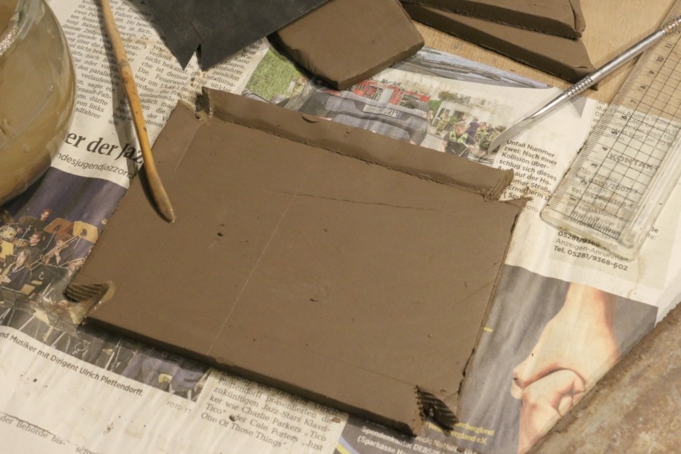 Zudem wurde mal ein Unterteller für Trockenwellen nachgefragt. Das hat mich heute ermuntert, auch gleich für die Punktschnecken rechteckige Unterteller zu machen. Es sollten also sowohl diese, als auch kleine Trockenwellen und zumindest die länglichen größeren Trockenwellen darauf passen. Die eher quadratischen bräuchten dann wohl ein Extraformat. Da die Nachfrage danach aber bislang eher gering ist, werde ich wohl nur mit einer Pappschablone arbeiten. Andernfalls wäre über die Herstellung einer Gipsform nachzudenken …