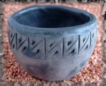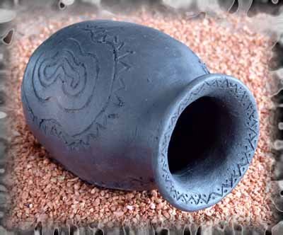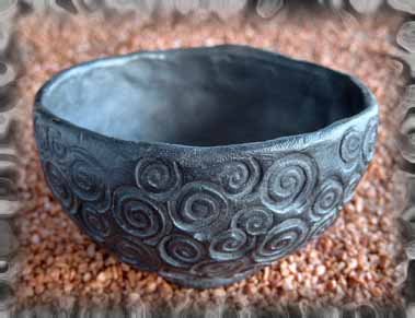 Kohlenmonoxid – im Ofen. Der Rauch dringt in die Poren der Keramikobjekte ein und färbt sie dauerhaft schwarz. (Dieses Verfahren funktioniert bis etwa 900°).