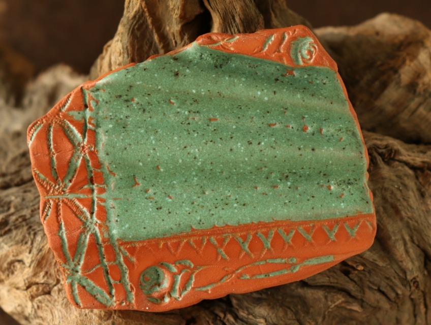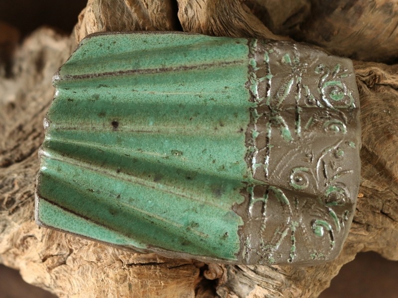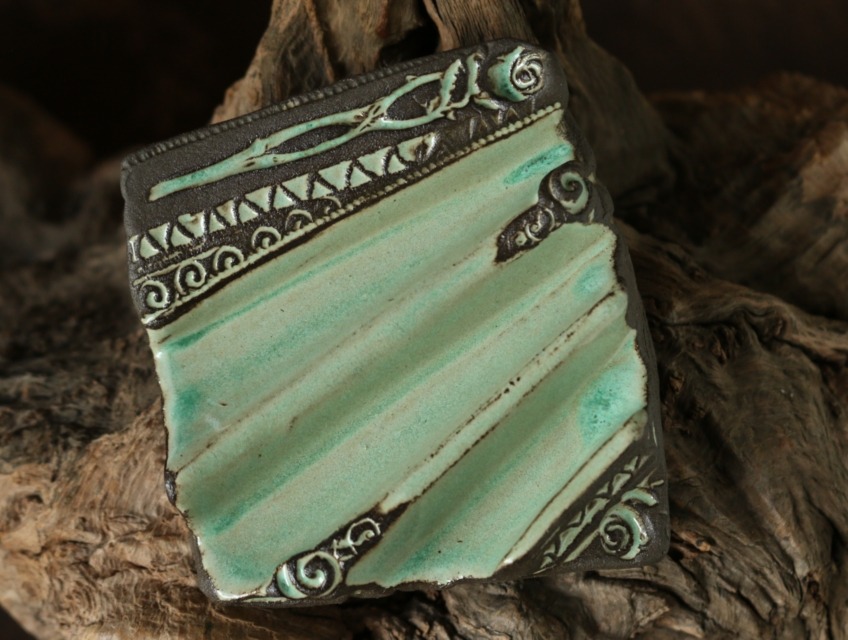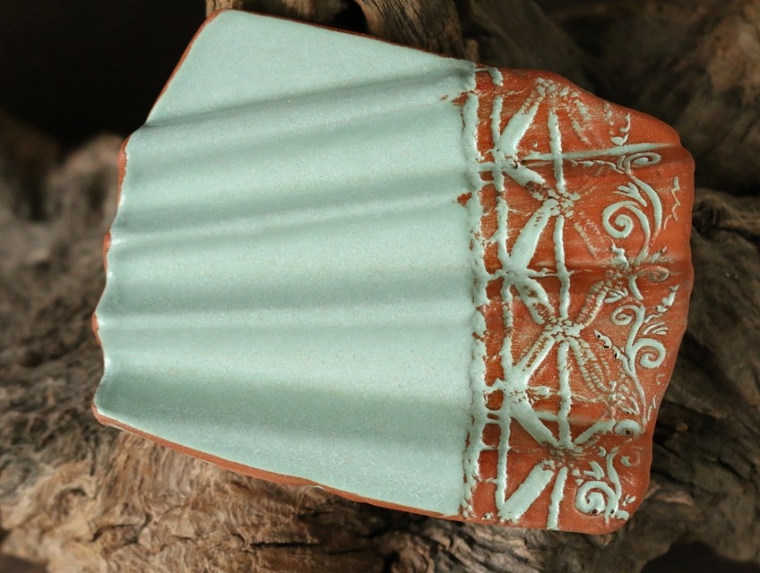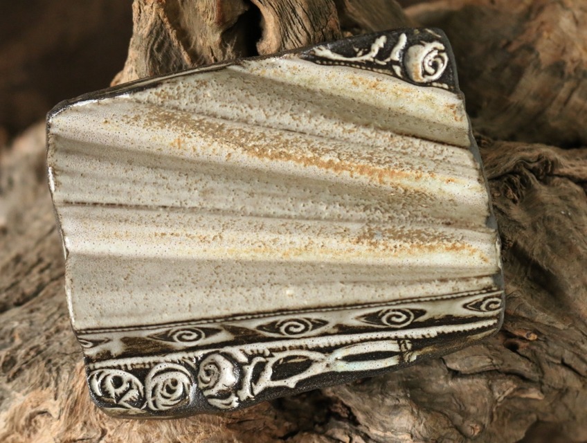 Mit diversen Techniken verzierte Badkeramiken aus hellem Steinzeugton – hoch und dicht gebrannt.